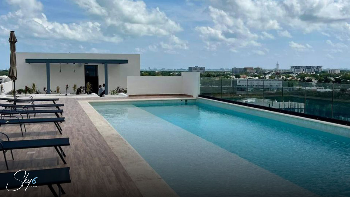 Asimismo, uno de los grandes diferenciadores de este desarrollo son sus amenidades. Podrás disfrutar de un gimnasio totalmente equipado para mantener tu rutina diaria, un rooftop ideal para reuniones o momentos de relajación, alberca para disfrutar del clima caribeño y un pet park pensado especialmente para quienes tienen mascotas. Sin duda, es un espacio que responde a las necesidades actuales de estilo de vida.