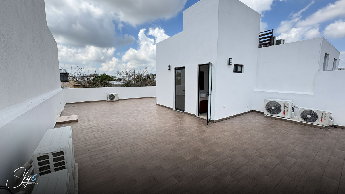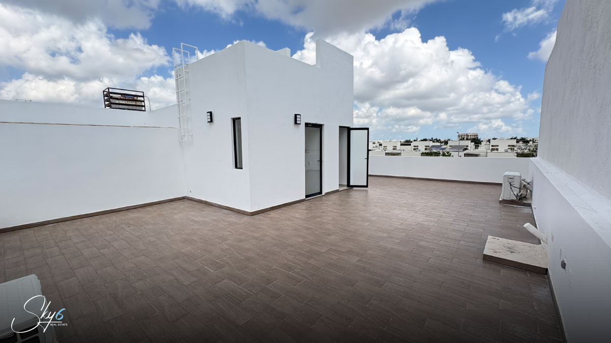 En cuanto al equipamiento, la casa incluye aires acondicionados, cortinas blackout y estacionamiento semitechado para 2 vehículos, lo cual brinda practicidad y confort en el día a día. Sin embargo, uno de los mayores atractivos es su rooftop privado con baño, un espacio ideal para reuniones sociales, momentos de relajación o simplemente disfrutar del clima de Cancún.