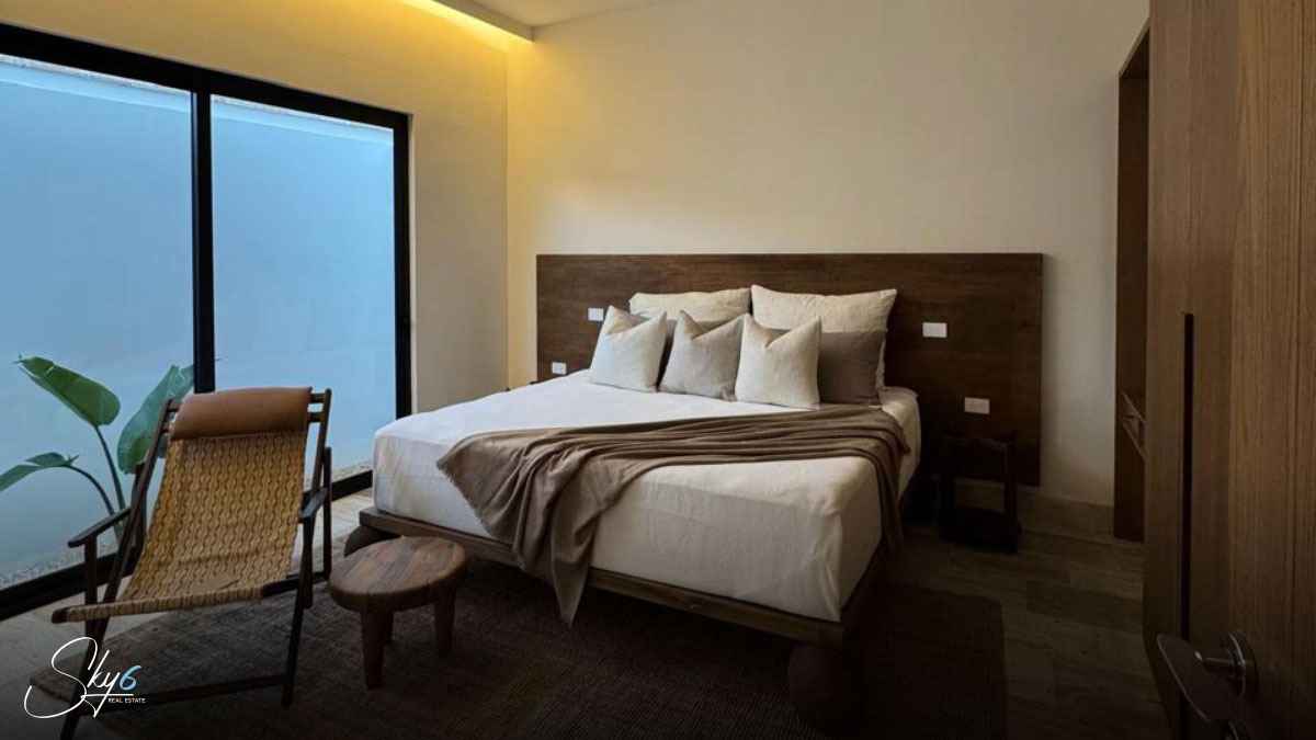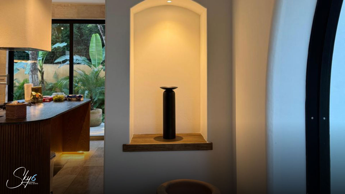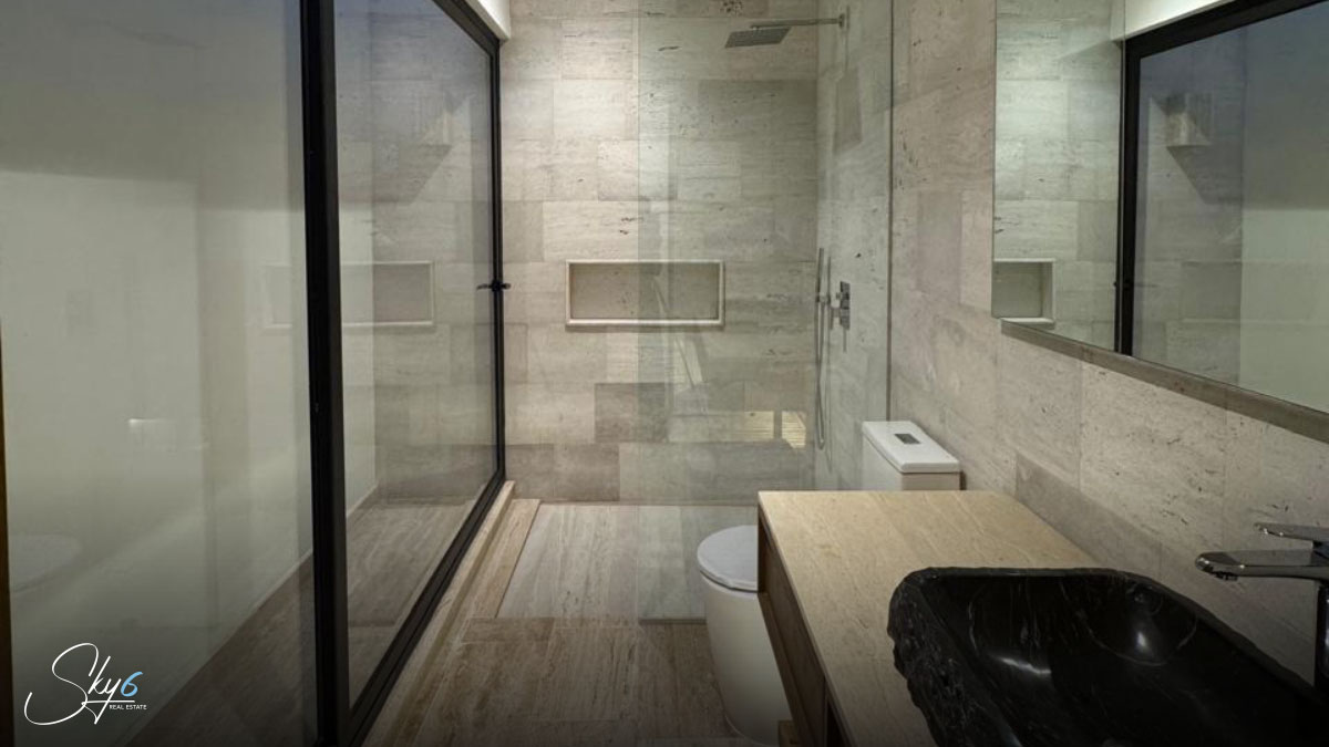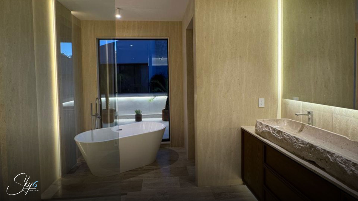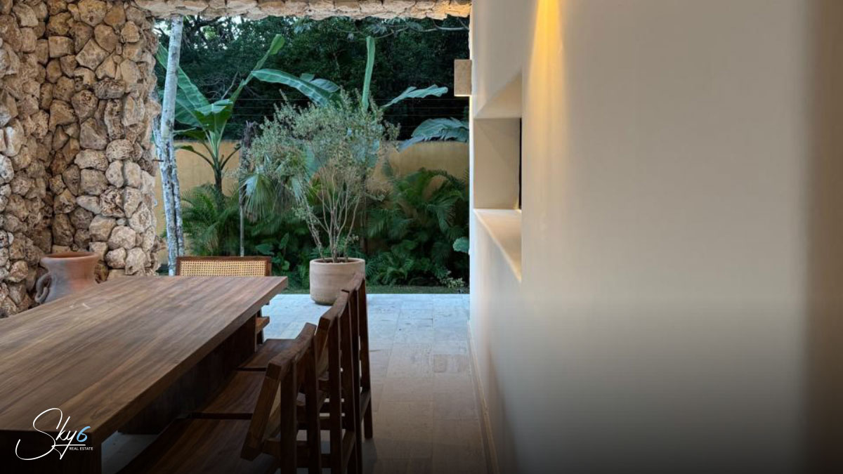 En cuanto a los acabados, esta propiedad establece un nuevo estándar de excelencia. Por ejemplo mármol travertino, conocido por su durabilidad y belleza atemporal. La carpintería, hecha con madera de tzalam, añade un toque cálido y sofisticado. Igualmente importante es el sistema de climatización: se han instalado aires acondicionados Inverter de alta eficiencia, asegurando un ambiente fresco y un menor consumo energético. Por si fuera poco, la casa incluye un suavizador de agua, una amenidad que prolonga la vida útil de sus electrodomésticos y mejora su calidad de vida.