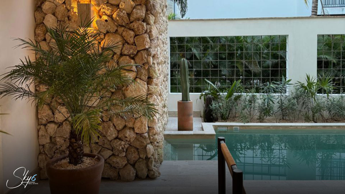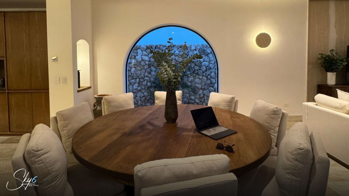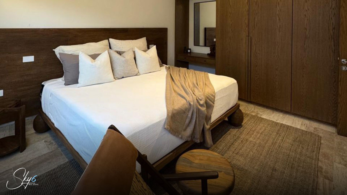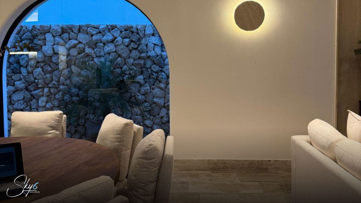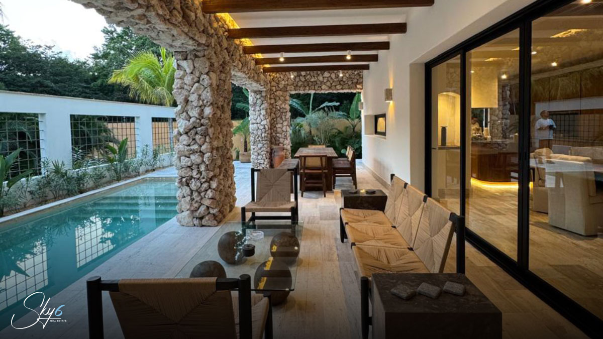 En cuanto a los acabados, esta propiedad establece un nuevo estándar de excelencia. Por ejemplo mármol travertino, conocido por su durabilidad y belleza atemporal. La carpintería, hecha con madera de tzalam, añade un toque cálido y sofisticado. Igualmente importante es el sistema de climatización: se han instalado aires acondicionados Inverter de alta eficiencia, asegurando un ambiente fresco y un menor consumo energético. Por si fuera poco, la casa incluye un suavizador de agua, una amenidad que prolonga la vida útil de sus electrodomésticos y mejora su calidad de vida.